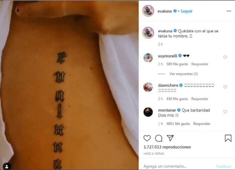 "Hace unas semanas ‘La Pulga’ me sorprendió con un tattoo con mi nombre", fue el texto con el que el cantante de Vida de rico compartió el momento exacto en el que vio el increíble detalle por parte de Evaluna.