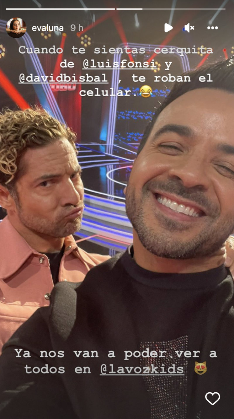 “Cuando te sientas cerquita de David Bisbal y Luis Fonsi y te roban el celular. Ya nos podrán ver a todos en La Voz Kids”, escribió la compositora de Refugio junto con emoticones de caritas llorando de risa.