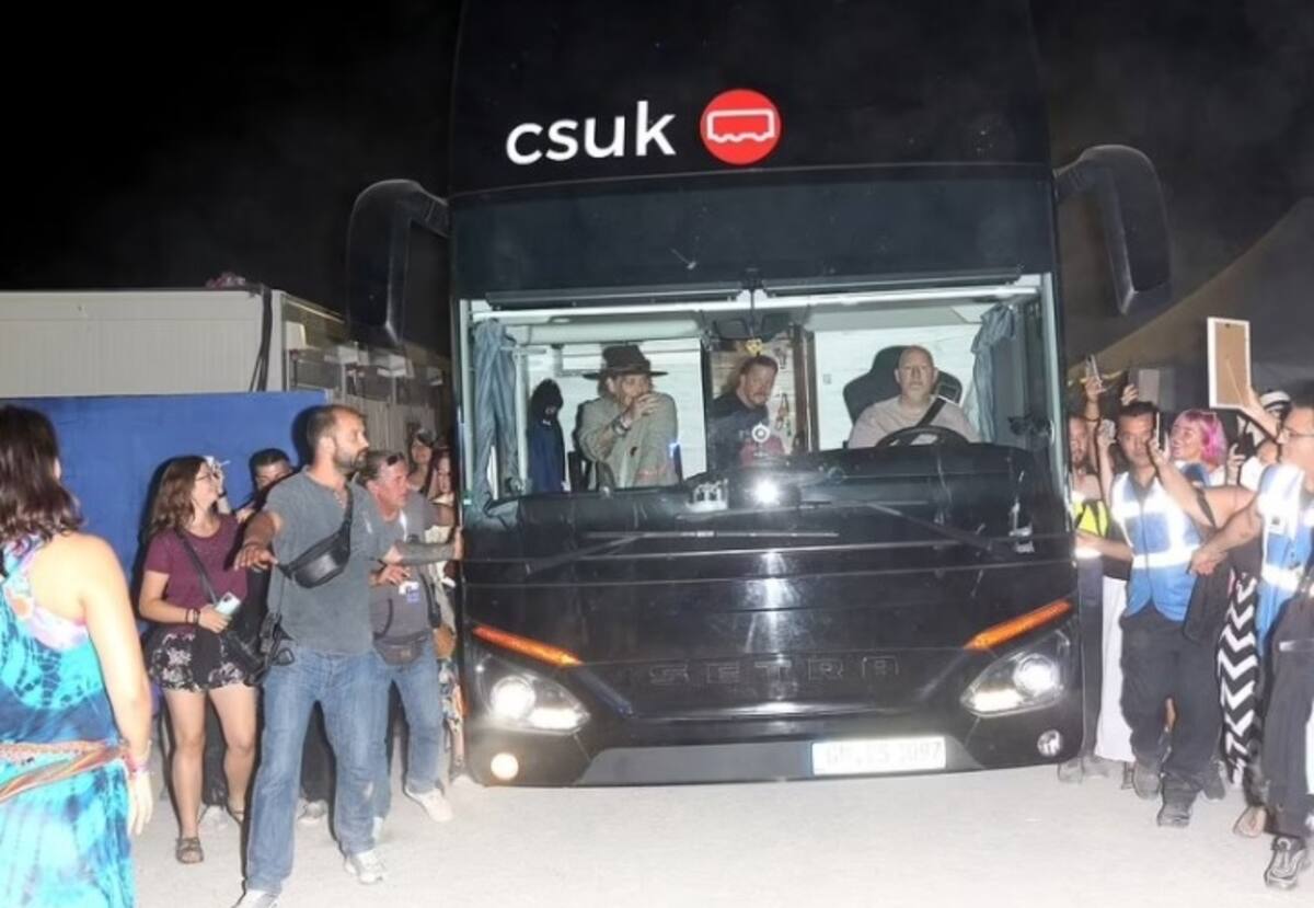 Johnny Depp está de gira con Jeff Beck, con quien se presentó la noche de este miércoles en Munich, Alemania, y a su salida varios fanáticos lo captaron a bordo del camión que los transporta a todos lados; sonrió y mandó saludos a todos los que se acercaron. Estas fotos llegan después de que la jueza Penny Azcarate le negara a Amber Heard un nuevo juicio.