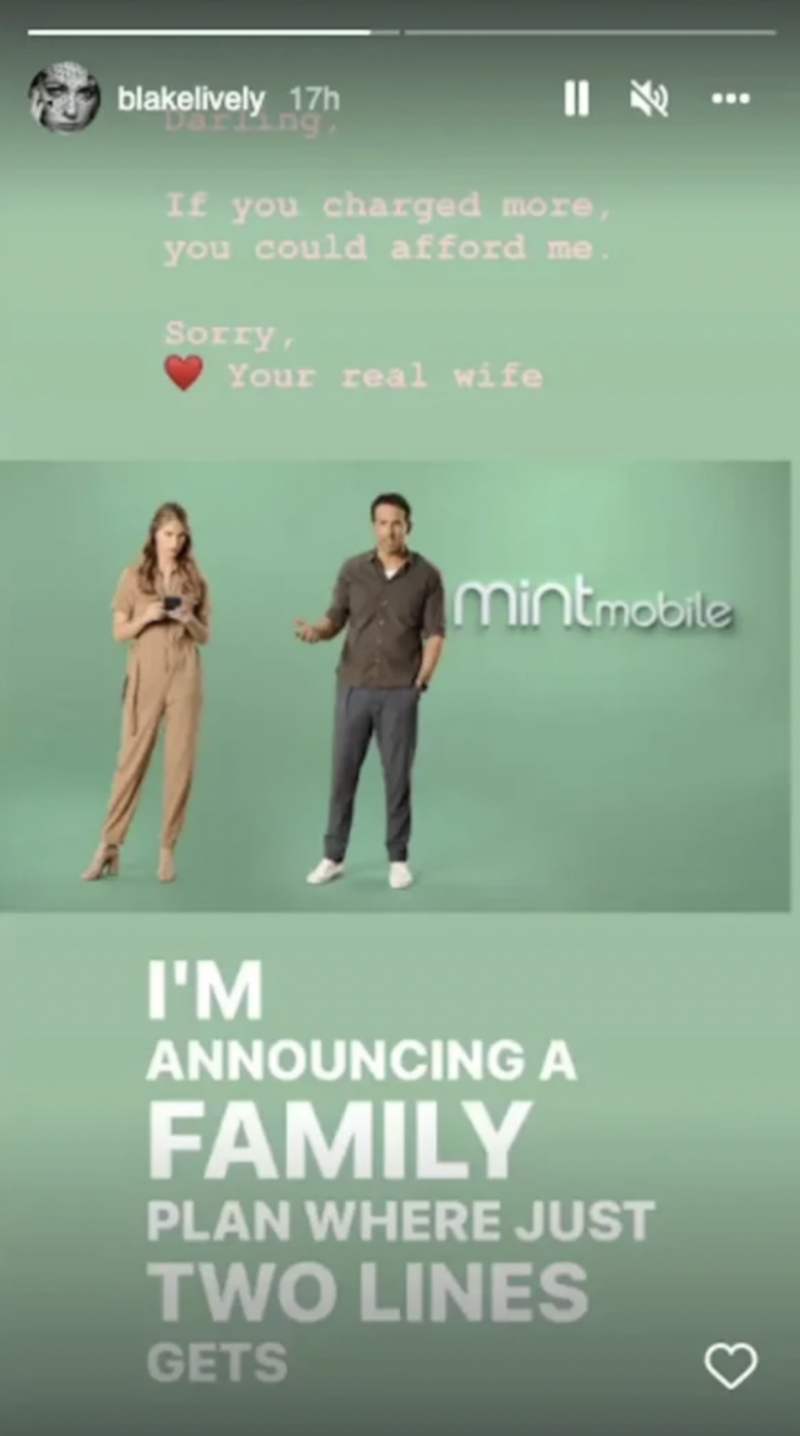 El actor que da vida a Deadpool apareció en un comercial de su propia compañía de servicio para celulares y mientras promocionaba un nuevo “plan familiar” llamó a escena a su esposa, pero no llegó Lively, sino otra actriz.