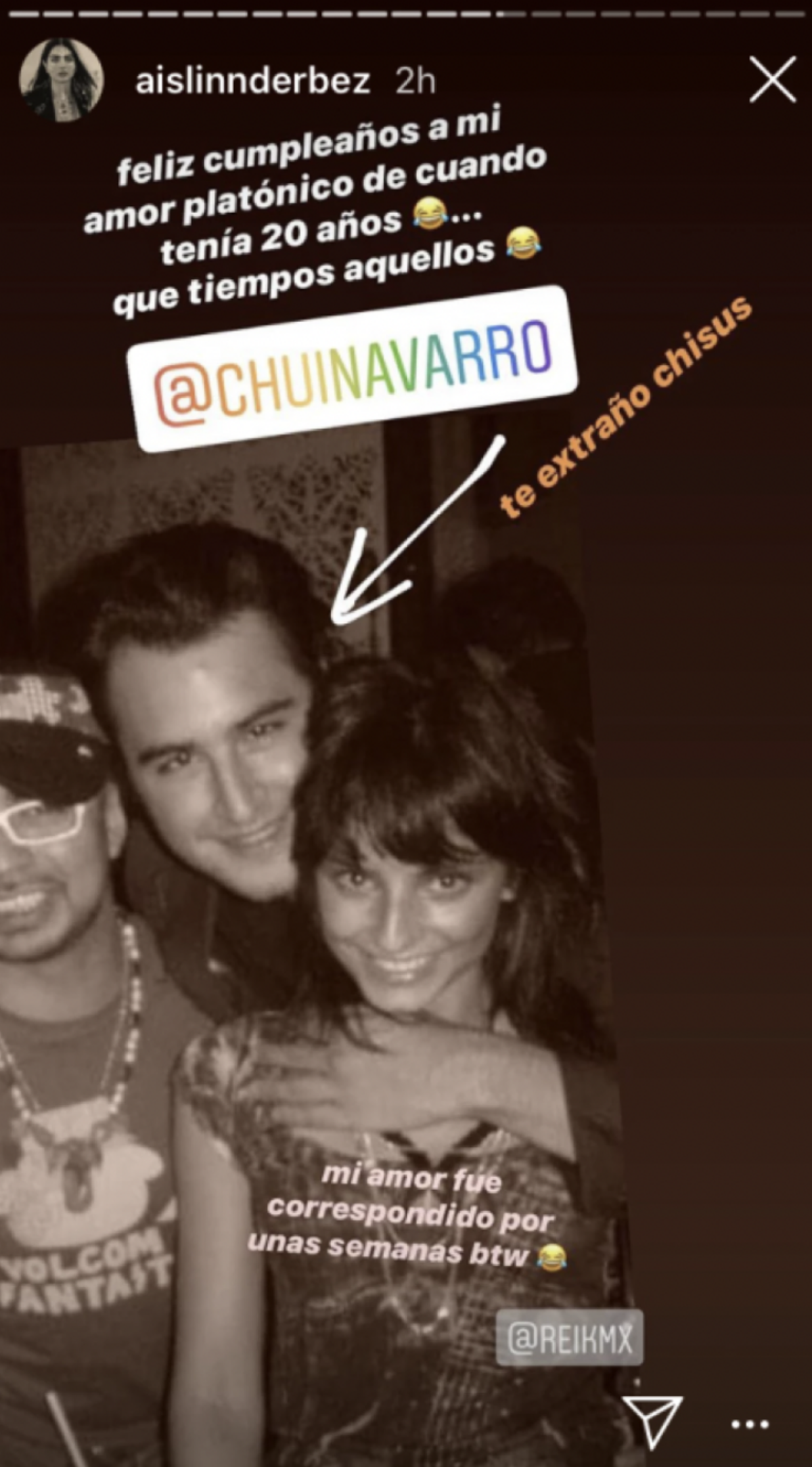 Fue en sus redes sociales que la hija de Eugenio Derbez se dirigió a Chui Navarro, vocalista de Reik para desearle un feliz cumpleaños y recordar que fue su amor platónico, pero que sí fue correspondido por unas semanas.