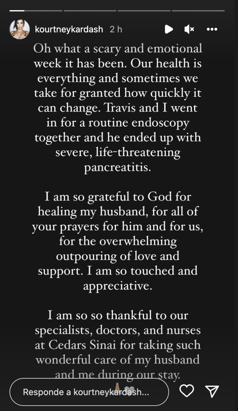 Y Kourtney también aprovechó que su esposo se encuentra fuera de peligro para relatar cómo vivió estos días tan difíciles.