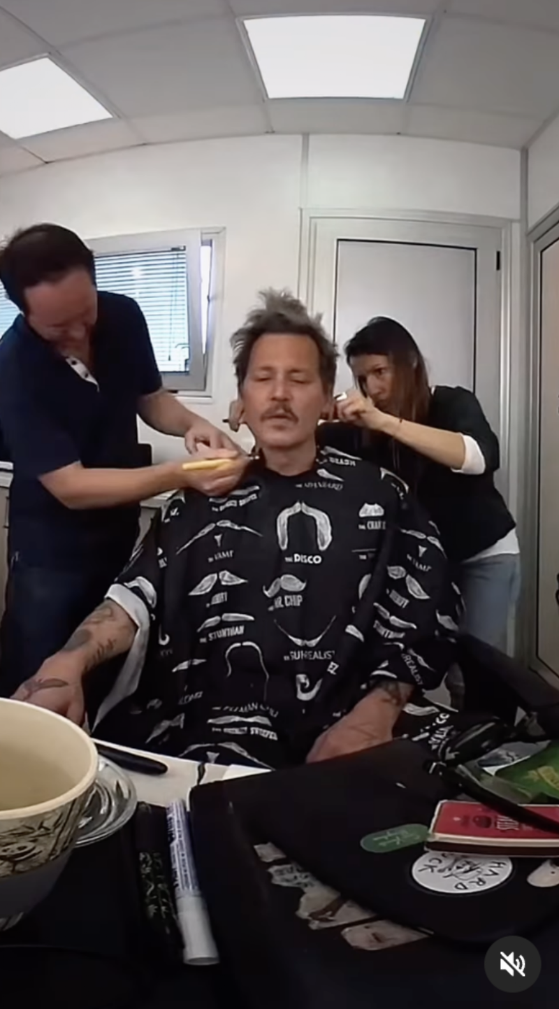 En el video se observa al ex de Amber Heard siendo atendido por dos estilistas, mientras una lo maquilla, otra le corta el pelo, sorprendiendo a sus fans, quienes aseguran que quedó irreconocible con el pelo chino, canoso y corto.