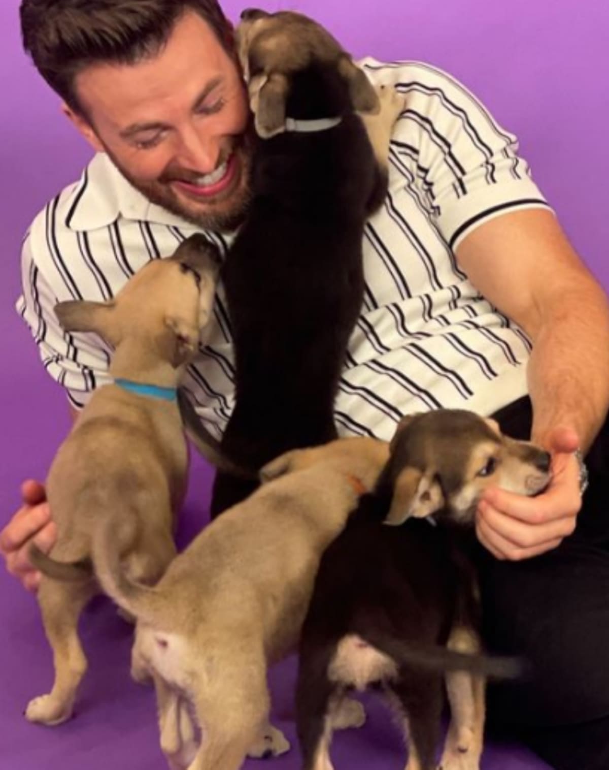 Fue poca la información que Chris pudo aportar, ya que los perritos no dejaban de jugar con el actor, que en una de las preguntas solo respondió entre risas: “¿A quién le importa?”, dando a entender que su único objetivo en ese momento era prestar total atención a los cachorros. De hecho, tanta fue su emoción que enfatizó que esa entrevista es la mejor que ha tenido en su carrera actoral.