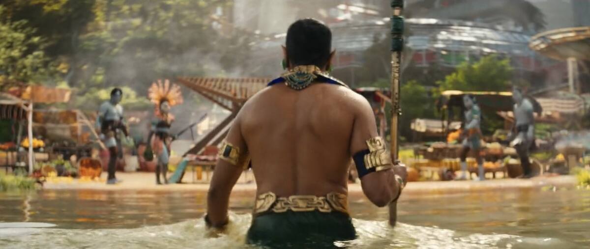 En este tráiler se puede que observar en tres distintos momentos aparece Huerta en su papel de Namor mostrando el traje del que tanto se especuló que usaría, pues se había dicho que la cultura azteca estaría impresa en su vestimenta y al parecer sí fue así; con el pecho descubierto, un penacho en la cabeza, además de algunos accesorios en color oro, mostraron cómo se verá el actor.