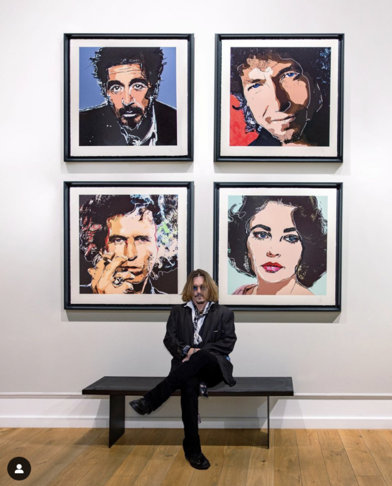 Por medio de sus redes sociales, el actor también promocionó sus litografías de edición limitada firmadas. La colección “Amigos y Héroes” consta de tan sólo 780 piezas y representan a cuatro personas que han inspirado a Depp: el Rolling Stone Keith Richards; Al Pacino;Bob Dylan y Elizabeth Taylor.