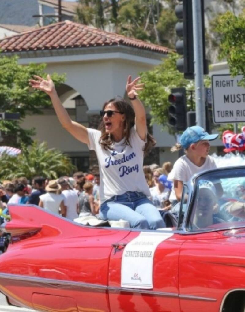 Con motivo de las celebración de la independencia en Estados Unidos, Jennifer Garner   su hijo de 10 años, Samuel, acudieron al Desfile del 4 de julio en Pacific Palisades. Madre e hijo se sentaron en la parte trasera de un auto convertible en el que pasearon por las calles y saludaron a los espectadores del evento.