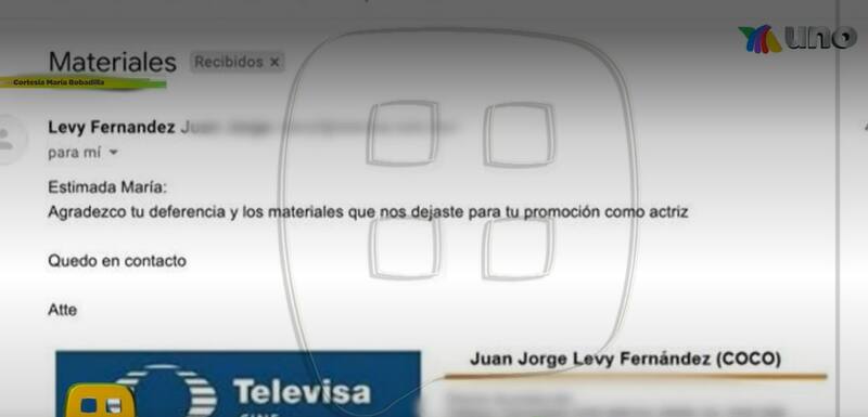Después de esto confesó que sí le mandó una serie de fotos de desnudo artístico, donde no mostraba su intimidad; sin embargo, contó, Coco Levy sólo respondió con un correo de agradecimiento, evidencia que fue presentada en la emisión de espectáculos.