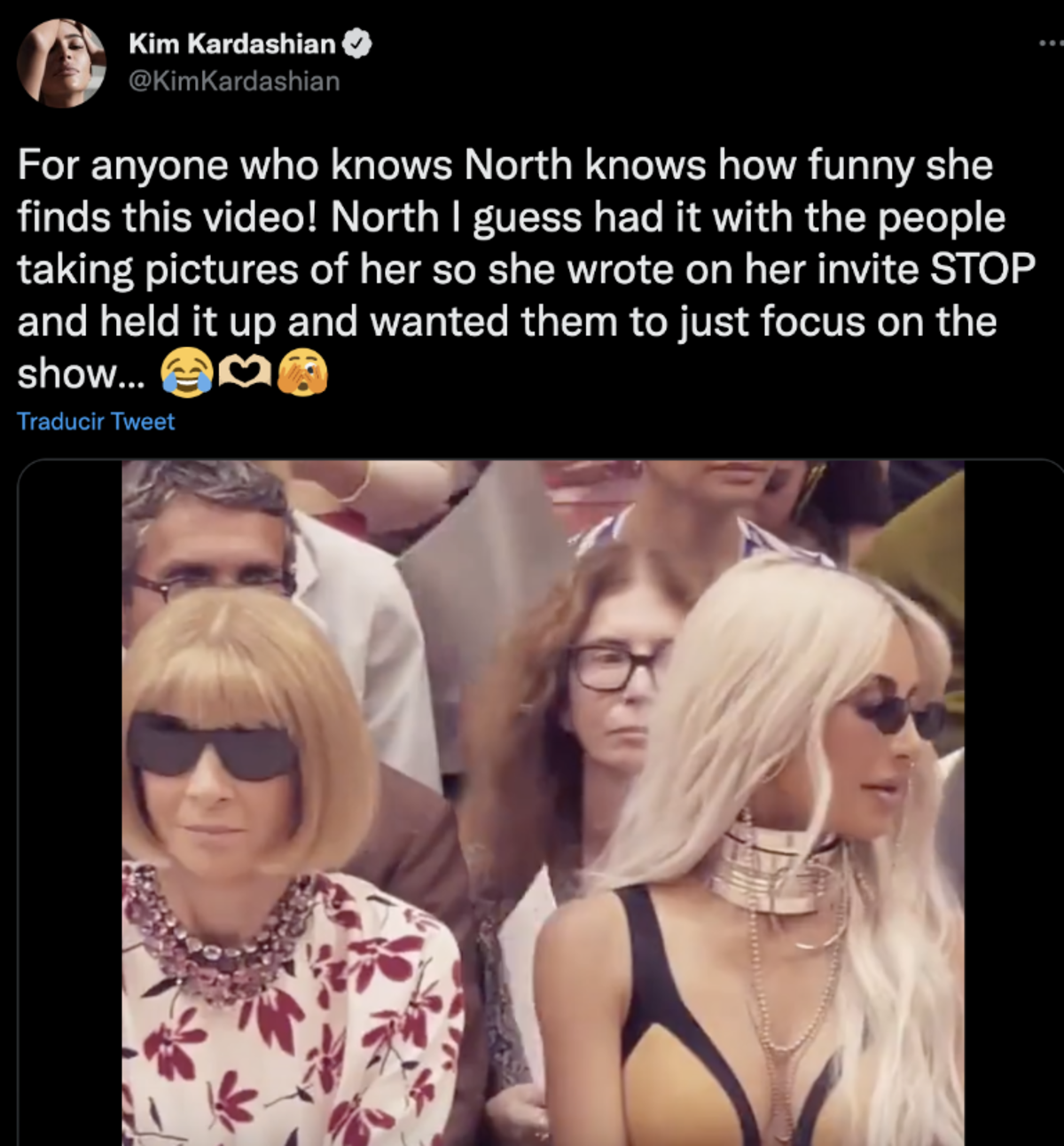“¡Para cualquiera que conozca a North, sabe lo divertido que encuentra este video! Supongo que North estaba harta de que la gente le tomara fotos, así que escribió en su invitación ALTO y lo levantó y quería que solo se concentraran en el show”, escribió su famosa mamá en redes sociales.