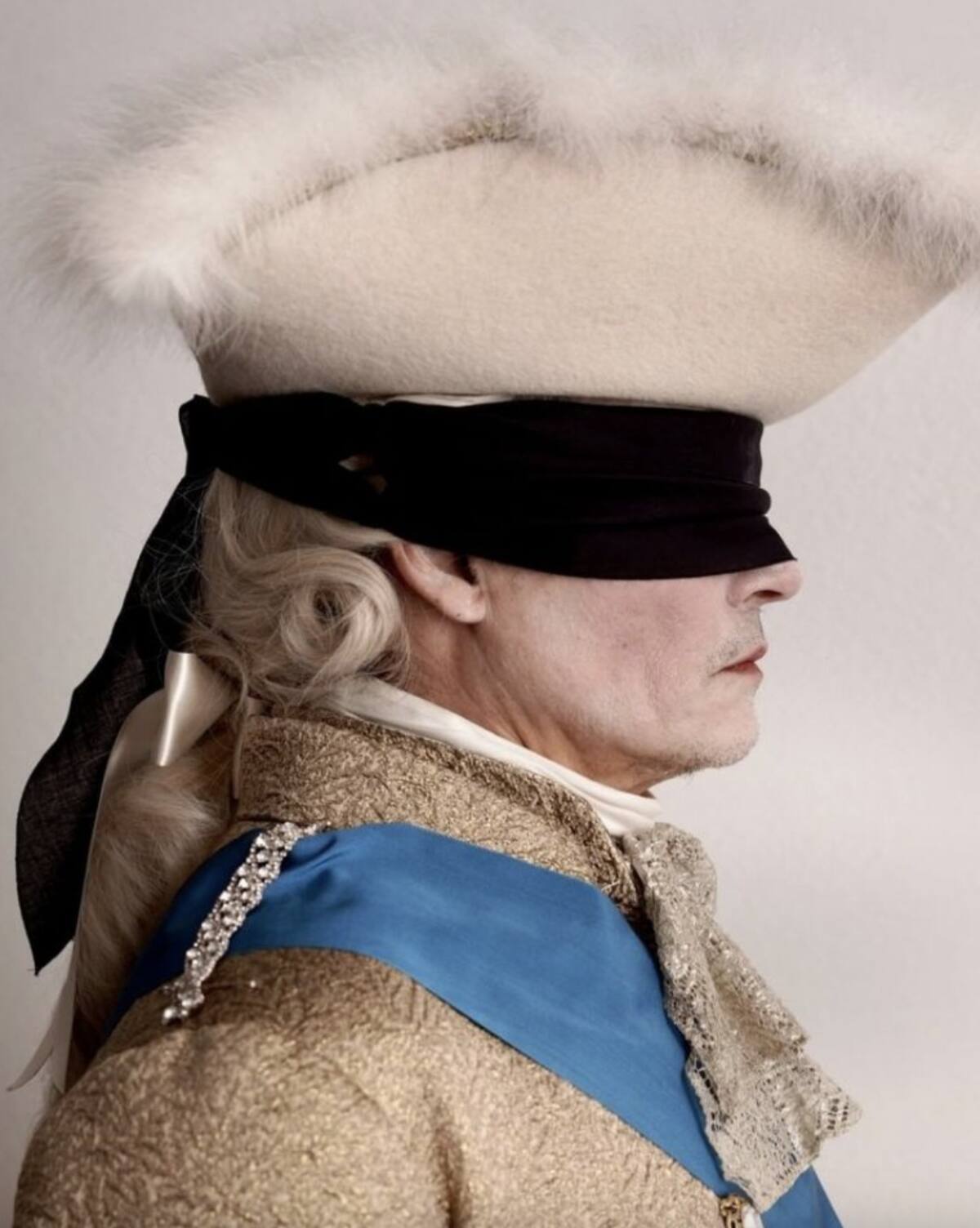 Fue la productora Why Not Productions quien reveló la primera imagen de Johnny Depp caracterizado como como el monarca. En la foto, la estrella se ve irreconocible con una peluca blanca, sombrero, y una venda negra en los ojos.