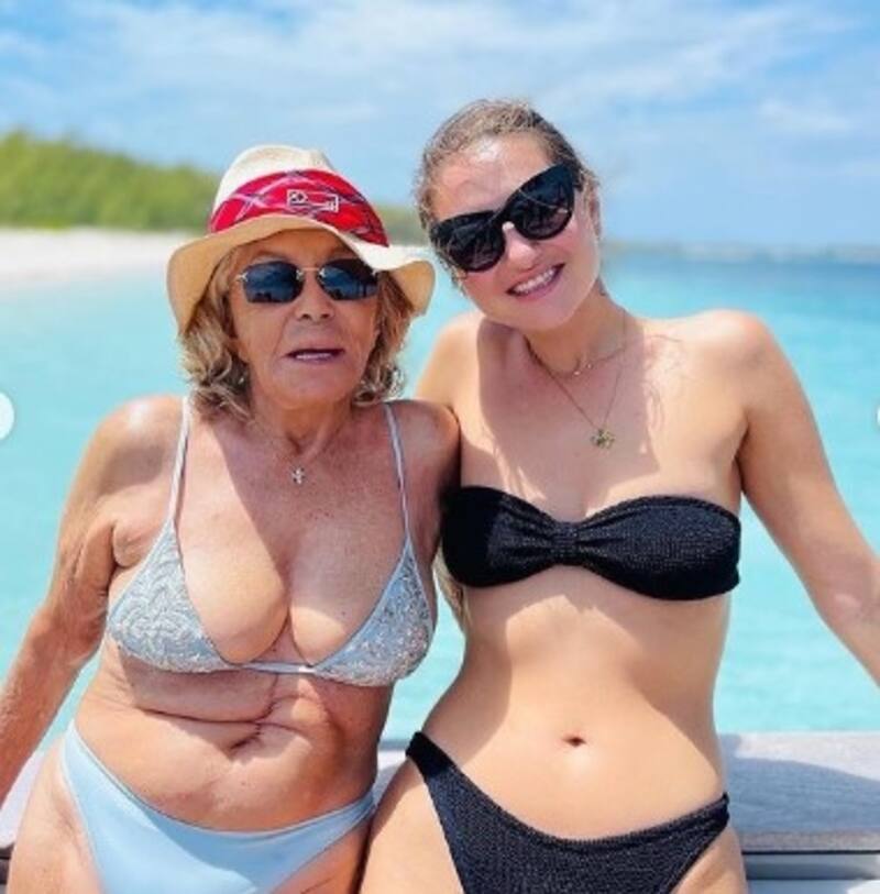 Durante una travesía en un navío por las Bahamas, Micheline se instaló al lado de su nieta modelo para sacarse las fotografías con un par de coquetos bikinis de colores claros y oscuros, al igual como alguna vez lo hizo cuando estuvo casada con Sean Connery.