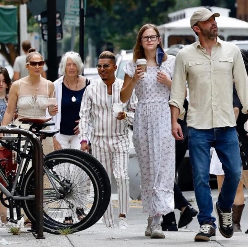 Violet junto a padre lideraron la caminata por las calles de la ciudad, mientras que Jennifer López y sus los demás hijos los seguían a unos cuantos metros. La joven, que cada día se parece más a su madre, se dirigieron muy cómplices a algunos negocios, mientras ella sostenía una vaso de café y Ben trataba de pasar inadvertido con un jockey. Ambos parecen haber dejado atrás los días de distancia, proyectando una nueva etapa en su relación que tendrá este sábado su primer hito. Y con Violet ocupando un lugar privilegiado en la mesa principal.