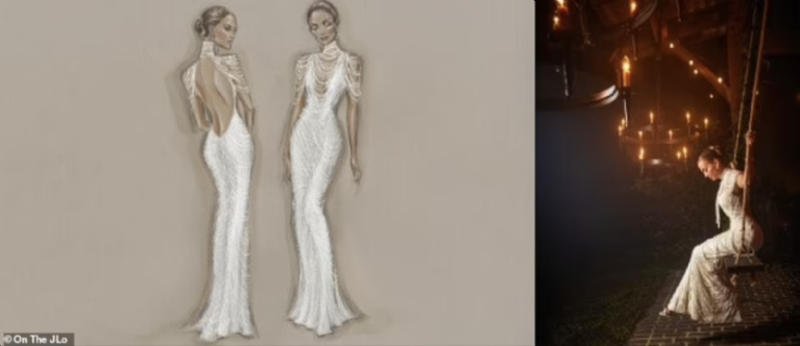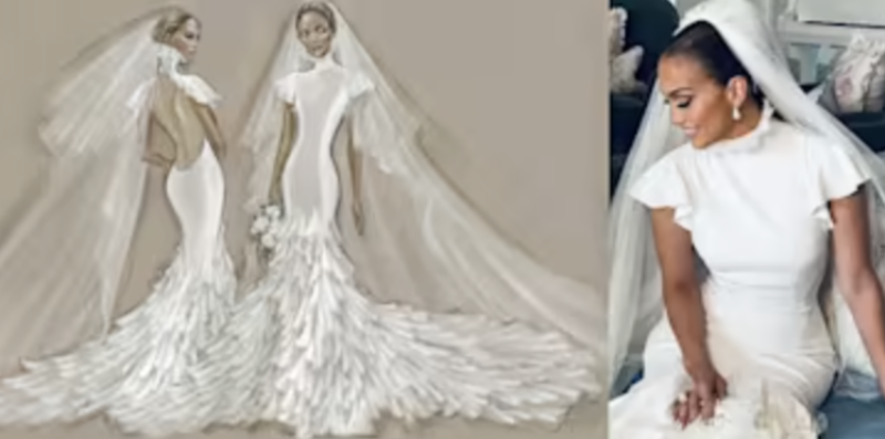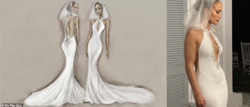 El boceto de uno de los tres vestidos que usó JLo en su boda (OnTheJLo.com)