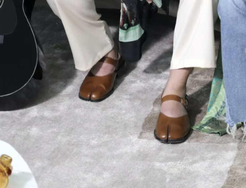 El calzado del cantante de Soldado del amor, es de color café, tipo mary jane, y lo que destaca es que tienen una división entre los dedos. Ese diseño pertenece a la casa de moda Maison Margiela y el modelo se llama Tabi y cuestan al rededor de 1,250 dólares.