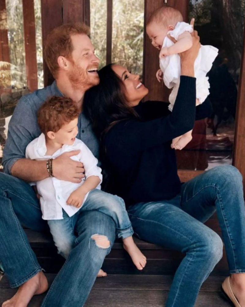 El príncipe Harry y Meghan Markle con sus hijos Archie y Lilibet en la postal de Navidad 2021 (Instagram)