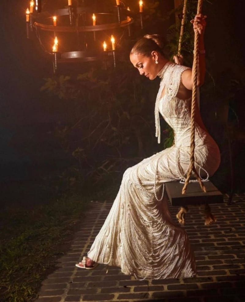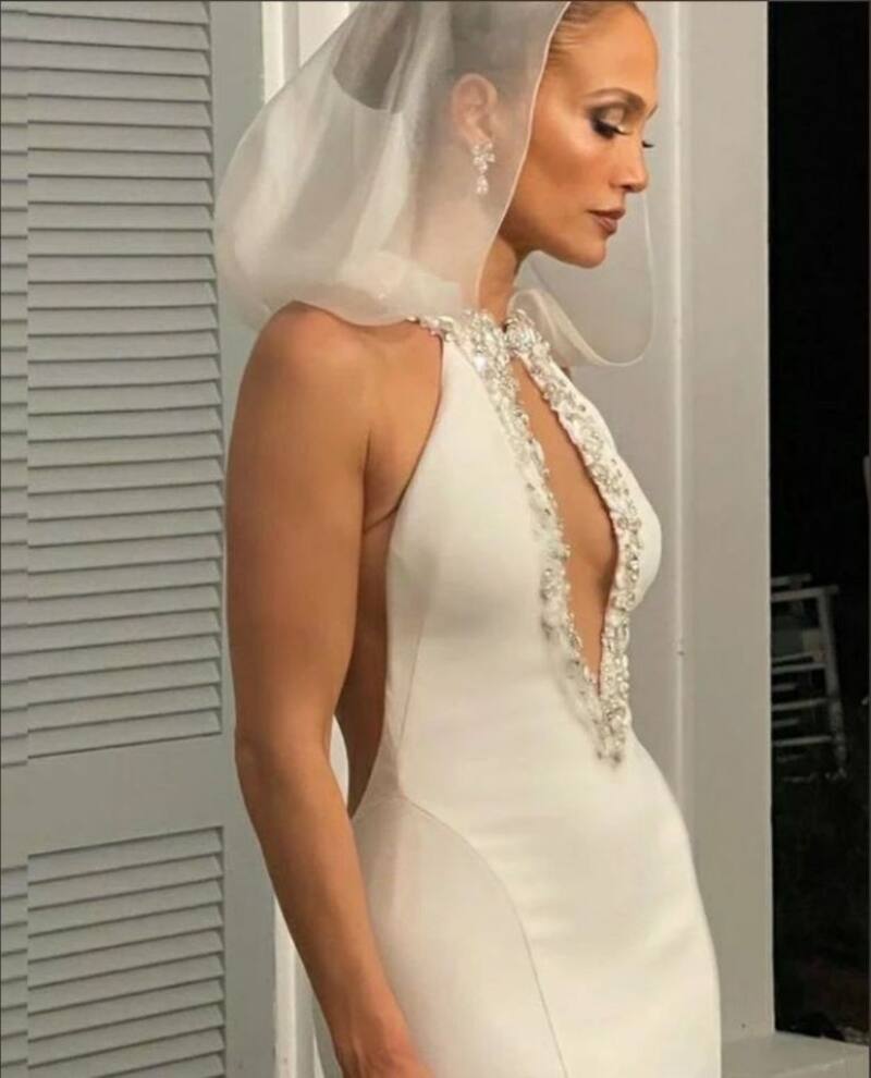 JLo optó por tres vestidos de la marca Ralph Lauren con un costo de un millón de dólares. Y aunque fueron de la misma casa de modas, cada uno de ellos se distinguió del otro por sus delicados detalles, los que enfundados en telas blancas lograron destacar a la artista en su gran día.