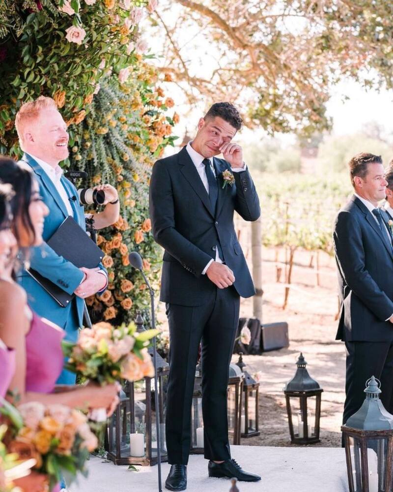 En un primer post, el ex participante del programa Bachelorette mostró una imagen en la que aparecía visiblemente emocionado esperando el arribo de Hyland al altar: “Este es el momento en que vi a mi esposa el día de nuestra boda. Lloré mucho. Me gusta mucho”, tituló la postal.