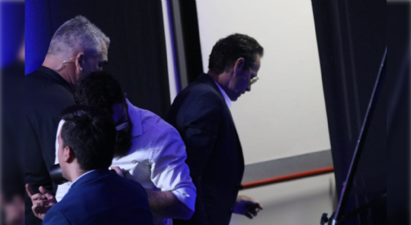 Marc saliendo de la premiación antes de tiempo Foto: Cristóbal Núñez -Nación Media