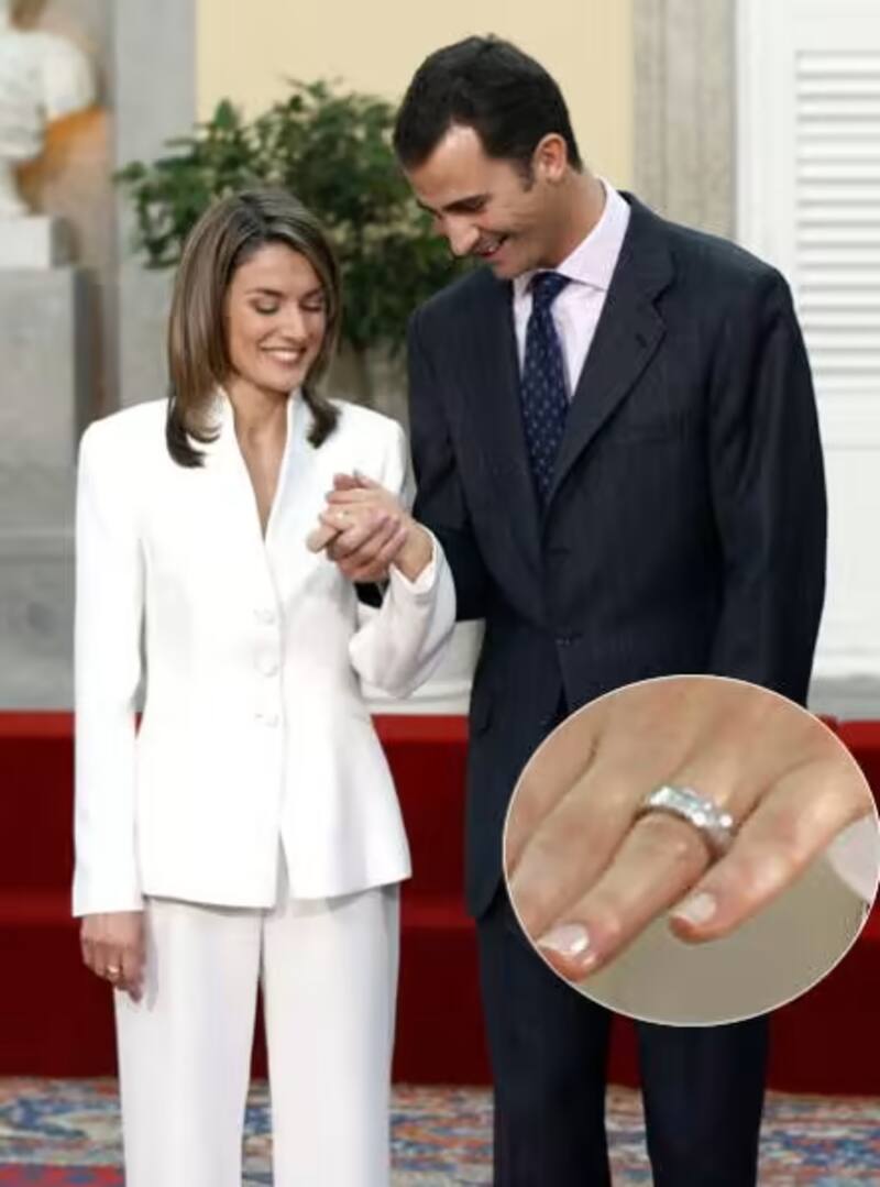 El rey Felipe (54) le regaló a su entonces prometida, Letizia Ortiz (49) un anillo de diamantes en carril, que por entonces estaba muy de moda en las actrices de Hollywood. Es un anillo muy elegante y tiene como ventaja que es muy sencillo y práctico de llevar en el día a día, sin llegar a ser muy ostentoso.