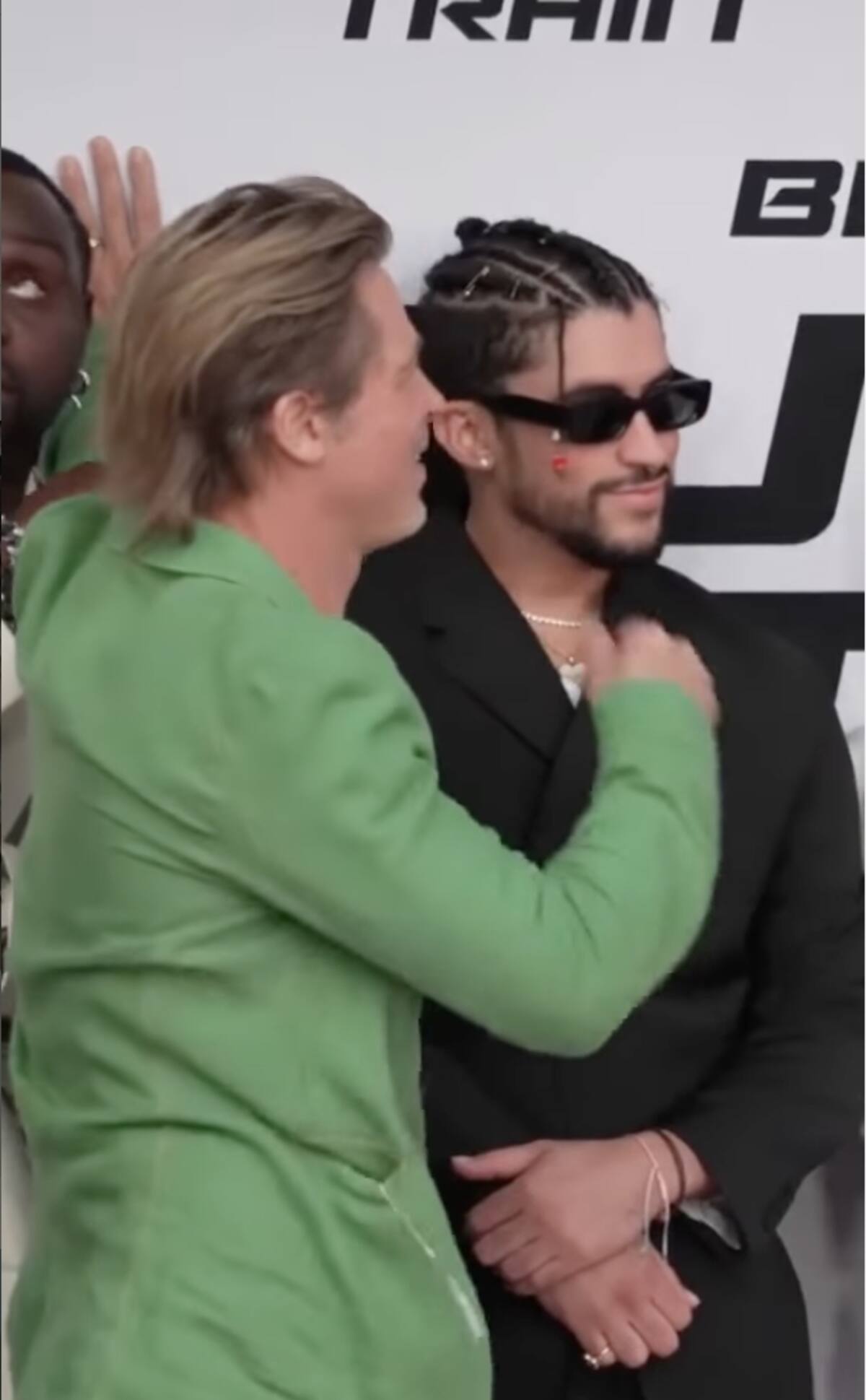 Brad Pitt recientemente dio muestras de la química que tuvo con Bad Bunny, con quien compartió escenas en la cinta Bullet Train. Durante la premier que se llevó a cabo en Los Ángeles, Pitt se acercó de una manera muy singular al cantante lo que evidenció el buen trato que existe entre ambos.