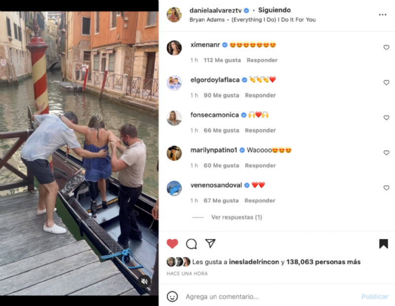 Fue por medio de su cuenta de Instagram, que la ex reina de belleza subió un video en el que se ve lo difícil que fue subirse a una clásica góndola para pasear por los canales de Venecia, y que fue el actor, quien tuvo que auxiliarla para que pudiera mantener el equilibrio y así poder ingresar a la embarcación.