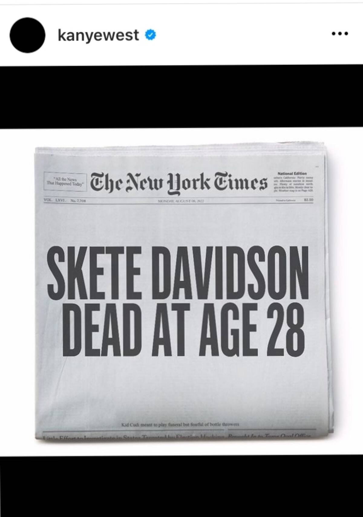Pete se hizo varios tatuajes en honor a su entonces novia; sin embargo, la relación terminó debido a que sus agendas no podían coincidir mucho con las ocupaciones y compromiso que tiene Kim con sus hijos. Tras conocerse la ruptura amorosa, Ye no dudó en volver amenazar al también actor en sus cuenta de Instagram.