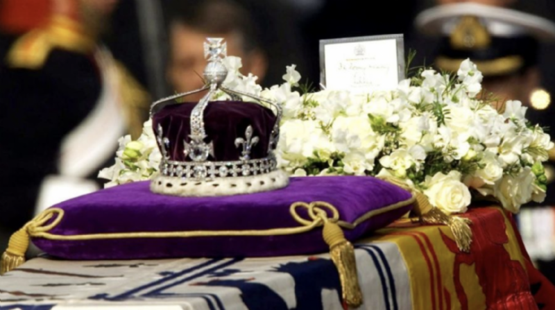 La joya fue diseñada por la joyería Garrard & Co. y es conocida como la corona de la reina madre, la pieza está hecha en platino y posee dos mil 800 diamantes, sobre el que destaca el famoso Koh-i-Noor, una piedra de 108 quilates que fue entregada a la reina Victoria a mediados del siglo XIX por el sultán turco Abdul Medjid.