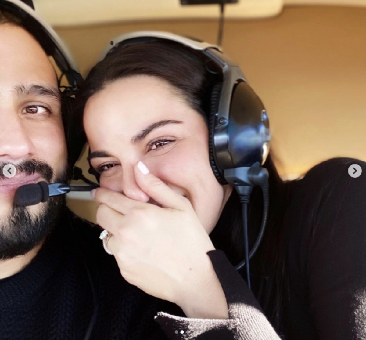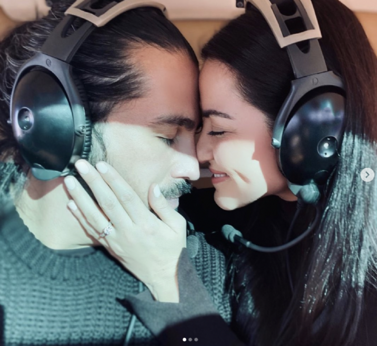 Por medio de sus redes sociales, tanto la actriz como el productor publicaron las imágenes que se tomaron inmediatamente después de la entrega del anillo, la cual se dio a bordo de un helicóptero, e incluso compartieron las palabras con las que Tovar le hizo la importante pregunta.