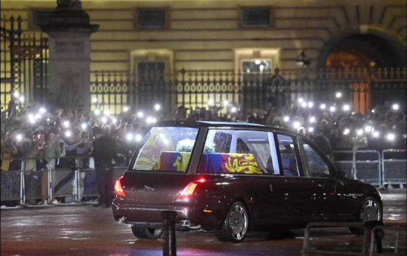 En medio de miles de personas, el féretro llegó al Palacio de Buckingham donde ya se encuentra el rey Carlos III (73), el príncipe William (40) y Harry (37) quienes la recibirán y harán una recepción en esta única noche que pasará en el palacio antes de que mañana por la mañana, la fallecida monarca viaje al Palacio de Westminster en donde se quedará hasta el lunes.