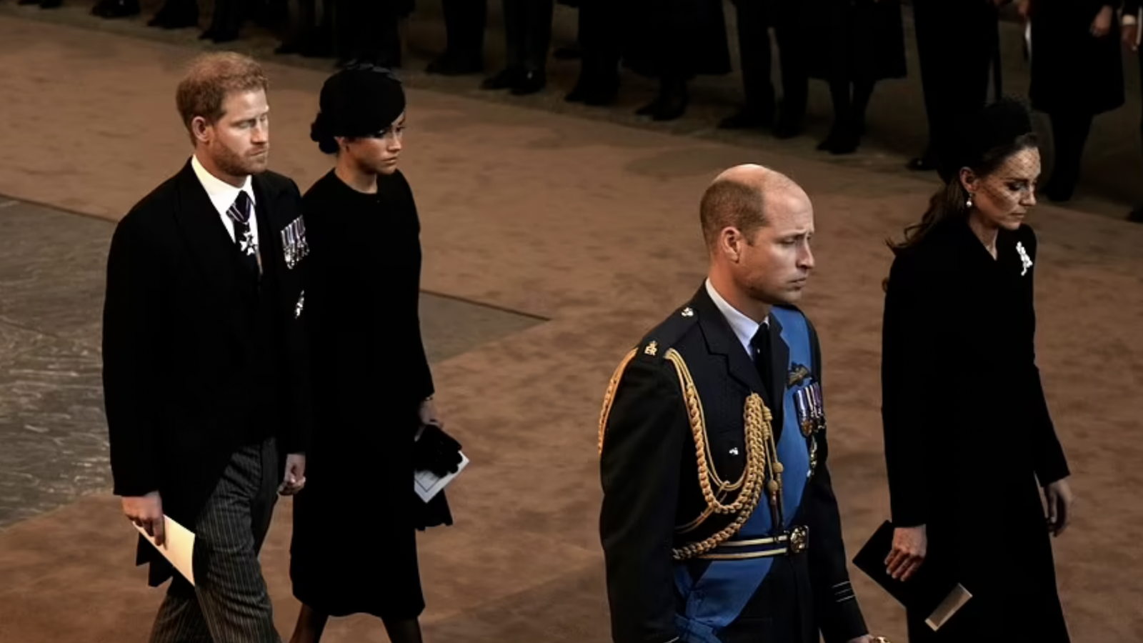 Los hermanos caminaron juntos en el cortejo fúnebre que partió desde el Palacio de Buckingham, ahí acompañaron a su padre, el rey Carlos III (73) y a sus tíos: la princesa Ana (72) y los príncipes Andrés (62) y Eduardo (58), mientras que sus esposas llegaron en auto hasta el lugar; Kate lo hizo el mismo carro que la Camila (75), la reina consorte y Meghan al lado de la Condesa de Wessex.