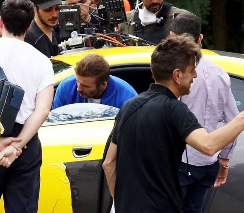 Este jueves, el esposo de la diseñadora de moda Victoria Beckham (48) fue captado muy radiante y feliz mientras daba una vuelta en su nuevo automóvil deportivo de color carbón con detalles en amarillo canario, que se usó para la campaña publicitaria.
