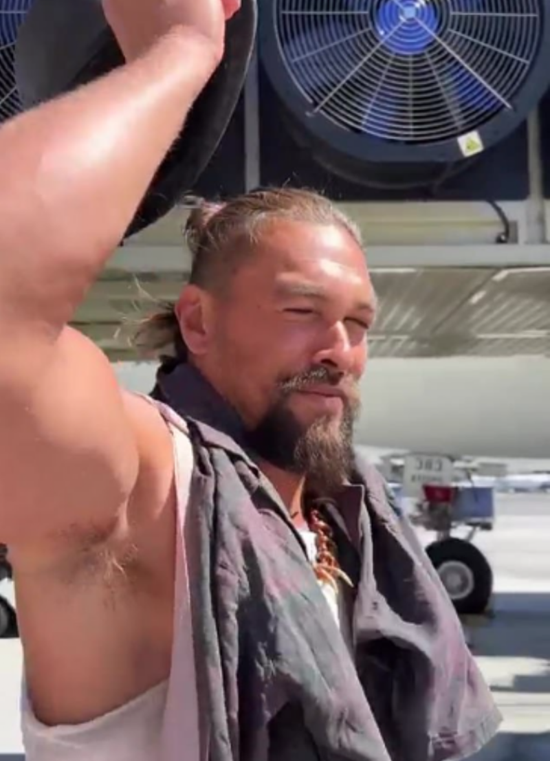 Luego, el protagonista de Aquaman, quien lucía pantalones grises y camiseta blanca sin mangas, continuó: "Hawaiian Airlines, los amo por esto y tengo algo especial para ustedes"; fue entonces cuando se quitó el sombrero y mostró su nuevo tatuaje en costado izquierdo de la cabeza.