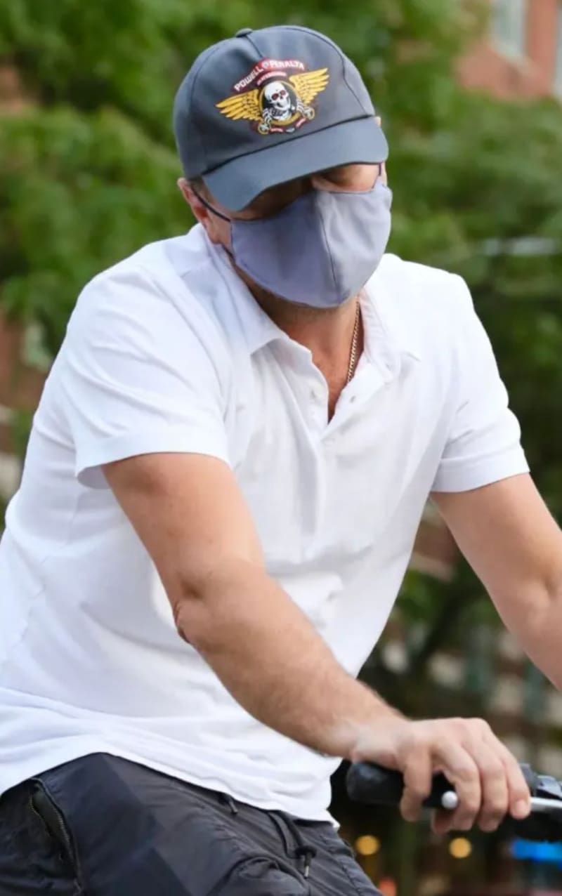 Leonardo fue visto andando en bicicleta con un grupo de amigos con quienes recorrió la ciudad; vestía playera blanca, pantalón corto negro, optó por una gorra gris y eligió usar cubre bocas que le tapaba casi toda la cara. A pesar de su intento por no notarse, los medios locales lograron verlo.