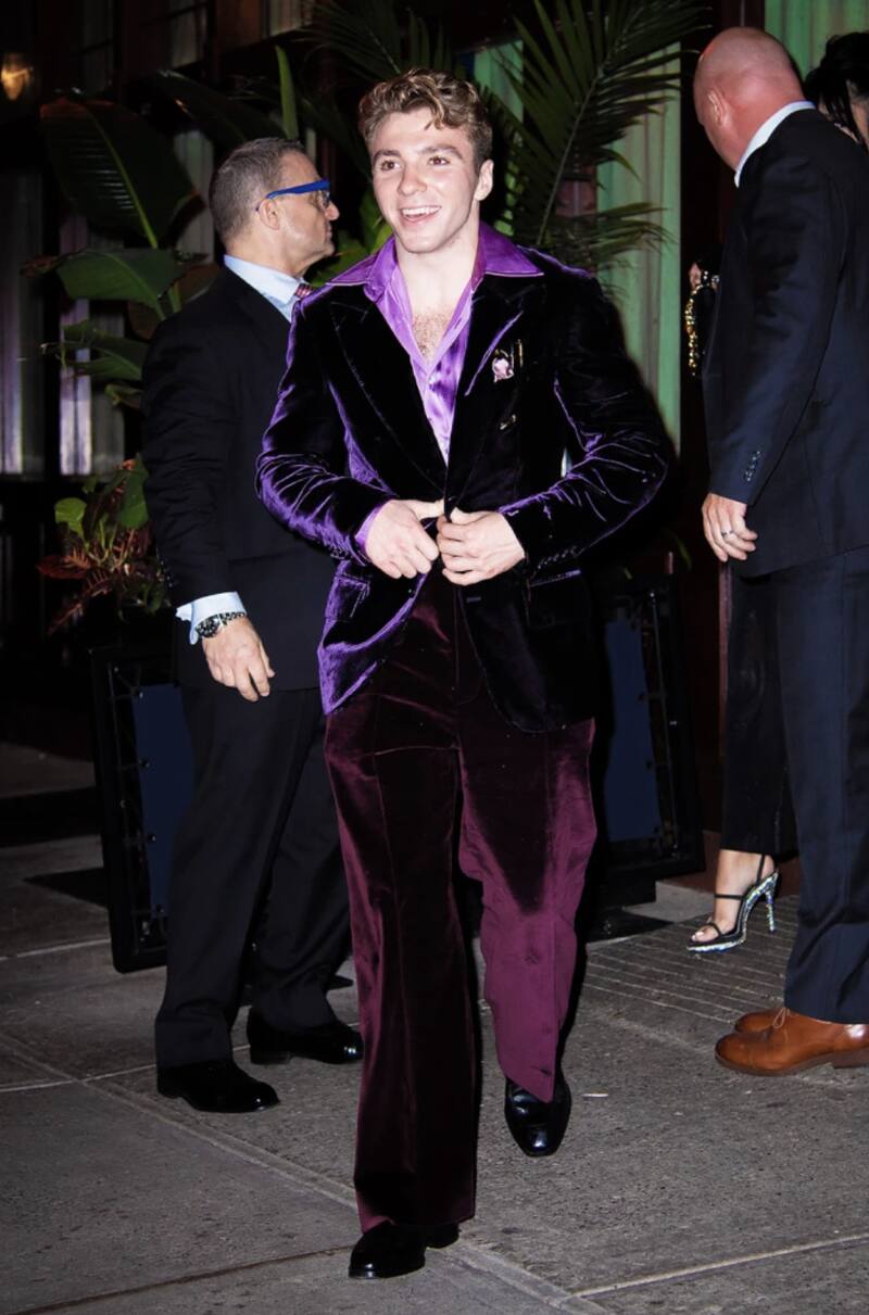 Por su parte, Lourdes portó un vestido negro que complementó con dije de cruz, sandalias altas y una bolsa negra. El toque de color lo puso Rocco, quien lució un saco, pantalón y camisa en distintos tonos de morado.