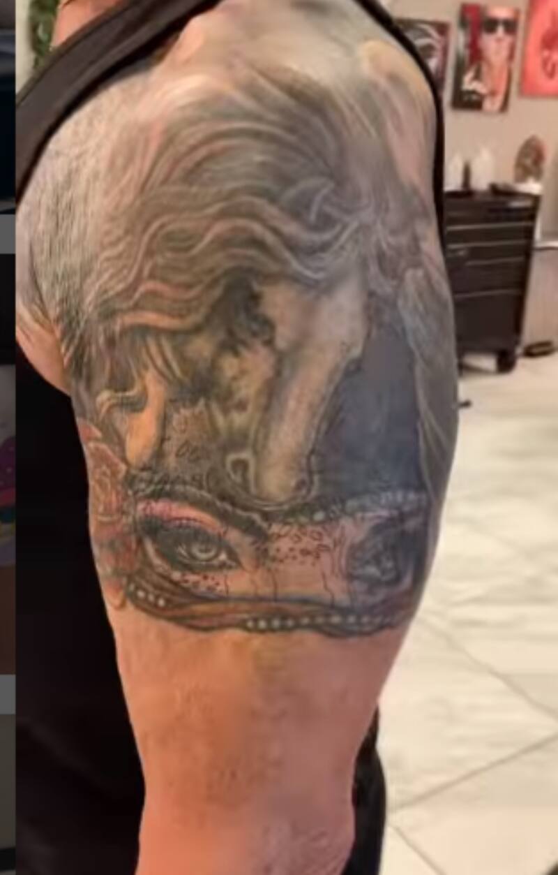 Así lucía el brazo de Sylvester antes de la modificación del tatuaje de los ojos de Flavin