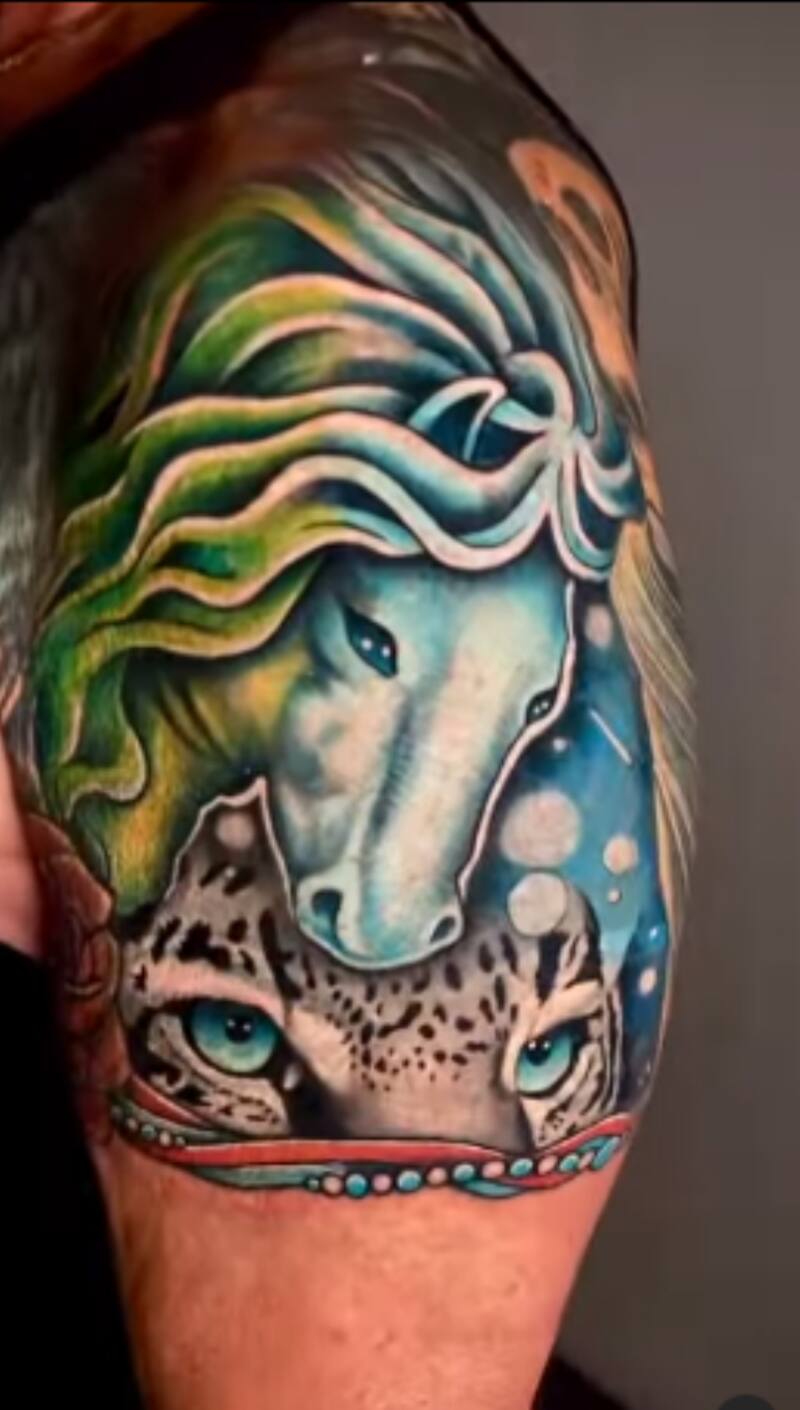 ¡¡¡Ronda 2!!! Aquí está el otro brazo que cubrí y reelabore el caballo existente. Es un honor saber que puede elegir a cualquiera, ¡pero le gusta mi trabajo lo suficiente como para volver y hacer otro proyecto!”, comentó el artista en diseño en su cuenta de Instagram.