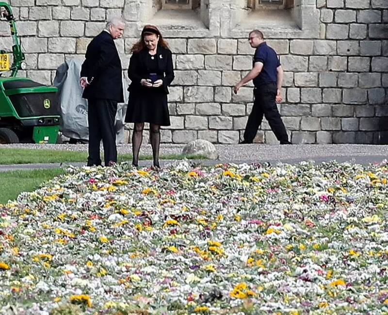 La pareja fue captada en horas de la mañana de este viernes observando los tributos florales dejados en las puertas del castillo en memoria de la difunta reina. Sarah, también conocida como Fergie, se le vio bastante conmovida mientras caminaba mirando todas las ofrendas.