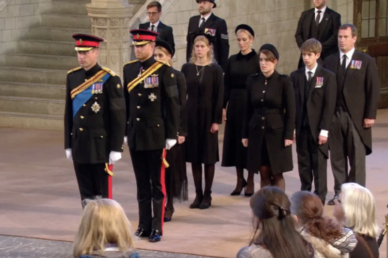 Tras pedir que toda la atención se centrara en despedir y honrar el legado de la monarca en lugar de si podría o no usar el uniforme militar, este sábado el esposo de Meghan Markle (41) fue visto usando su traje en el homenaje de 15 minutos que todos los nietos de la soberana le rindieron.