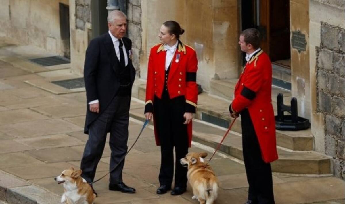 El príncipe Andrés, quien estuvo envuelto en un escándalo de abuso sexual, fue visto acariciando a los corgis mientras esperaban. La reina dio indicaciones de que no adoptaría más mascotas en caso de que muriera.