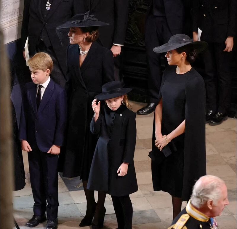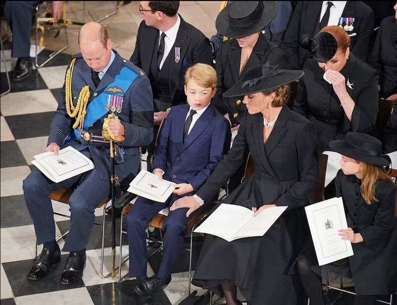 Por la mañana, hora de Londres, William caminó junto al príncipe Harry (38) detrás de la ataúd de Isabel II desde Westminster Hall hasta la Abadía de Westminster, ahí ambos se reencontraron con sus respectivas esposas, Kate y Meghan Markle (41) , quienes entraron por separadas al sitio pero al interior se encontraron para colocarse juntas; George y Charlotte también estaban con ellas.