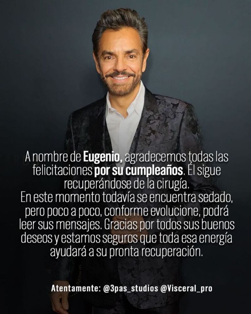 “Nos gustaría agradecerles a todos en nombre de Eugenio por todos los amables deseos de cumpleaños. Todavía se está recuperando de la cirugía y está sedado en este momento, pero leerá todos sus mensajes a medida que mejore su condición. Gracias por todo su amor y apoyo”, decía el mensaje que inmediatamente comenzó a recibir reacciones.
