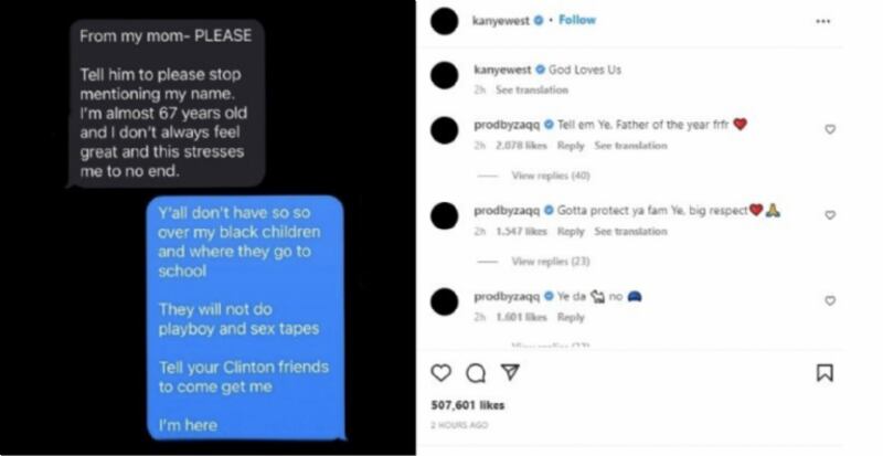Y las cosas no pararon ahí, ya que luego de atacarla directamente, West publicó una captura de pantalla en las que se lee una conversación con alguna de las hijas de Kris pidiéndole que no la mencione: “De parte de mi mamá - POR FAVOR, dile que deje de mencionar mi nombre. Tengo casi 67 años y no siempre me siento bien, y esto me estresa demasiado”.