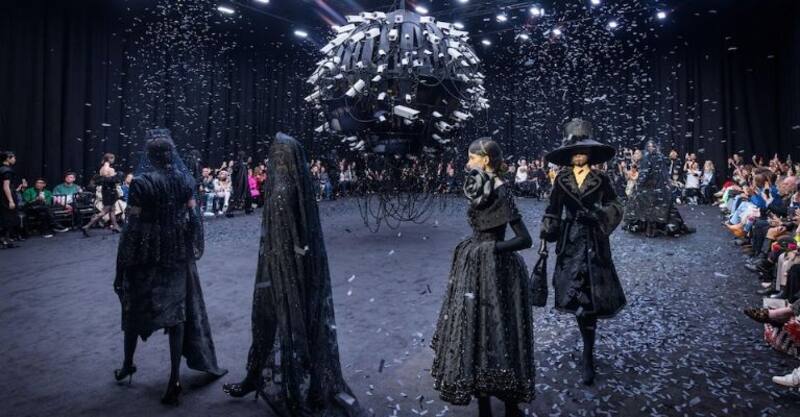 El medio indicó que la pasarela comenzó con la colección original mientras se escuchaba una música, pero después cambió para presentar los diseños del duelo y al finalizar cayó confeti negro del techo: “Fue un gran sprint, pero decidimos que queríamos marcar la ocasión desde el principio”, dijo Quinn.