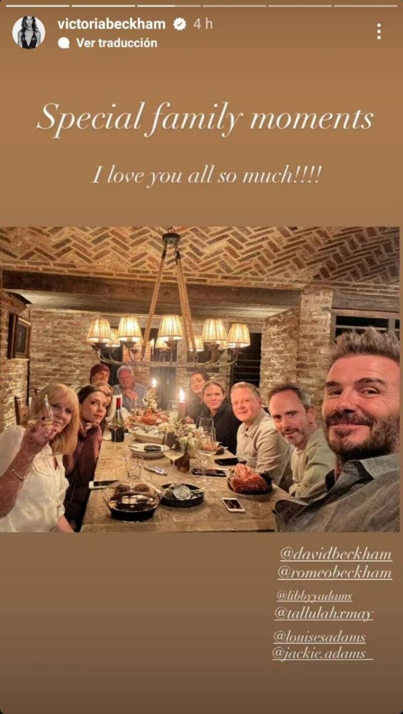 A través de su cuenta oficial de Instagram, la esposa de David Beckham (47) compartió este domingo una suerte de terapia familiar, superando la salida nocturna del sábado, en el que junto a su esposo no mostraron el mejor de los talantes. En sus historias, Victoria publicó unas fotografías junto a sus padres y otros familiares. Sin embargo, por mucho que a ella le gustaría que su hijo Brooklyn (23) estuviera ahí, fue el gran ausente de la celebración.