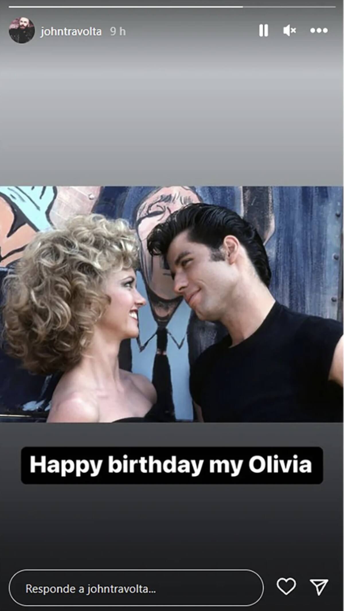 "Feliz cumpleaños, mi Olivia", escribió Travolta en la imagen en la que ambos están vestidos como sus personajes Danny Zuko y Sandy Olsson.
