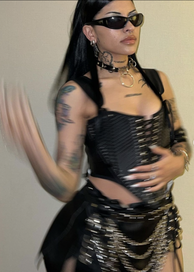 En una de las imágenes se ve a la trapera con un corsé y falda de cuero negro con cadenas y aplicaciones de metal. En la otras sesión optó por un bikini de charol con aplicaciones de cadenas, lleva el cabello suelto y un maquillaje natural pero desató la polémica lo diferente que se le ve el rostro, incluso algunos fans especularon que no se trataba de la misma persona, mientras que otros simplemente pensaron que se sometió a algún tratamiento estético.