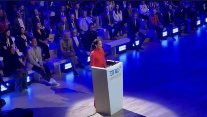Frente a los dos mil jóvenes delegados que llegaron al Bridgewater Hall de Manchester, la ex estrella de Suits destacó que era “muy agradable estar de vuelta en Reino Unido”.