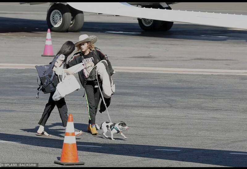 La artista llegó este lunes al aeropuerto de Van Nuys en Los Ángeles junto a su perro para abordar el jet privado de Jay-Z. Si bien, Cara acostumbra impactar positivamente con sus looks, en esta oportunidad no fue el caso, ya que se le vio despeinada, sin zapatos y con grandes ojeras.