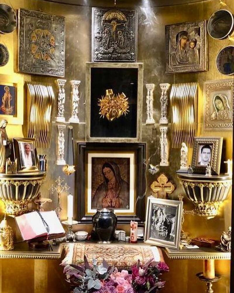 Las imágenes compartidas por el ex marido de Lucero (53), mostraron el altar que construyeron para el descanso de la mujer fallecida a los 90 años. Repleto de dorado y en medio de flores, figuras religiosas, cirios y fotos de Morán en su juventud, se mantienen las cenizas al interior de una urna funeraria al centro del altar.