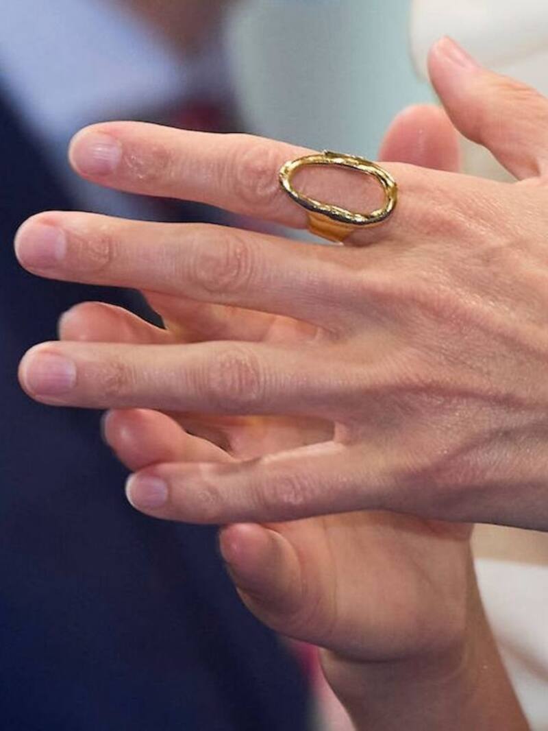Entre diciembre de 2017 y abril de 2019, la reina Letizia apareció siempre con las manos desnudas. En un almuerzo relacionado con el Premio Cervantes de ese año, la reina estrenó un anillo de la joyería Karen Hallam. Una pieza sencilla, con un círculo irregular y realizado en oro, con un costo aproximado de 90 dólares, la consorte española volvió a lucir una argolla en sus dedos. Aunque en un comienzo se pensó que el anillo sería utilizado brevemente por Letizia, el tiempo demostró lo contrario. El regalo que le hizo el rey Felipe VI estuvo en las manos de su esposa hasta su última aparición pública de 2022.